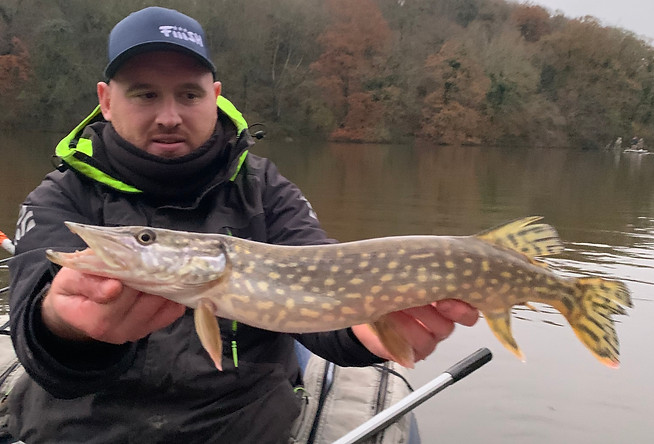 (Karl) Quant à nous les 5 floats Charles, Jonathan, Louis, valentin et moi même ,nous commençons à Trégnanton sur une pointe rocheuse pour viser la perche et le sandre. De jolis échos apparaissaient à l’écran des sondeurs. Louis, Charles et Valentin pêchent d'un coté de la pointe, Jo et moi faisons naturellement l’autre coté. Nous prenons rapidement des belles tapes des deux cotés : sandres, perches et brochets mais ce sera seulement une perche chacun de validé (27 et +30 cm) et un premier sandre pour Jonathan une heure plus tard.